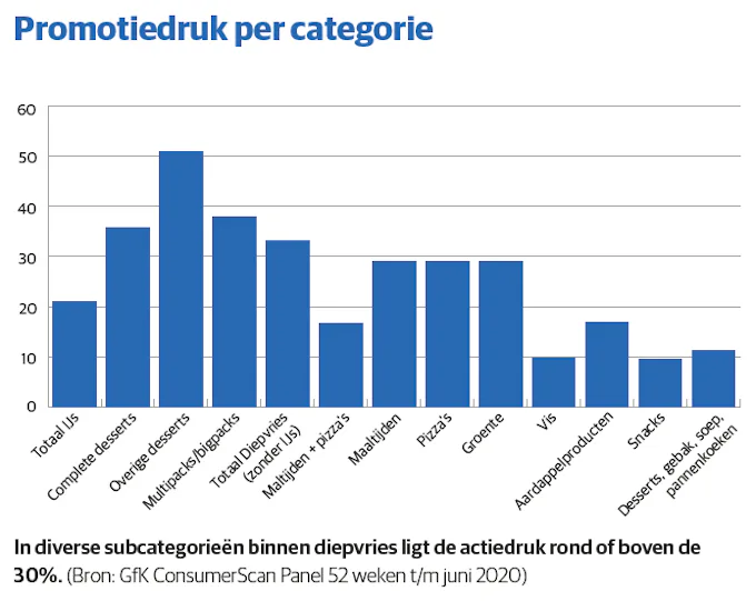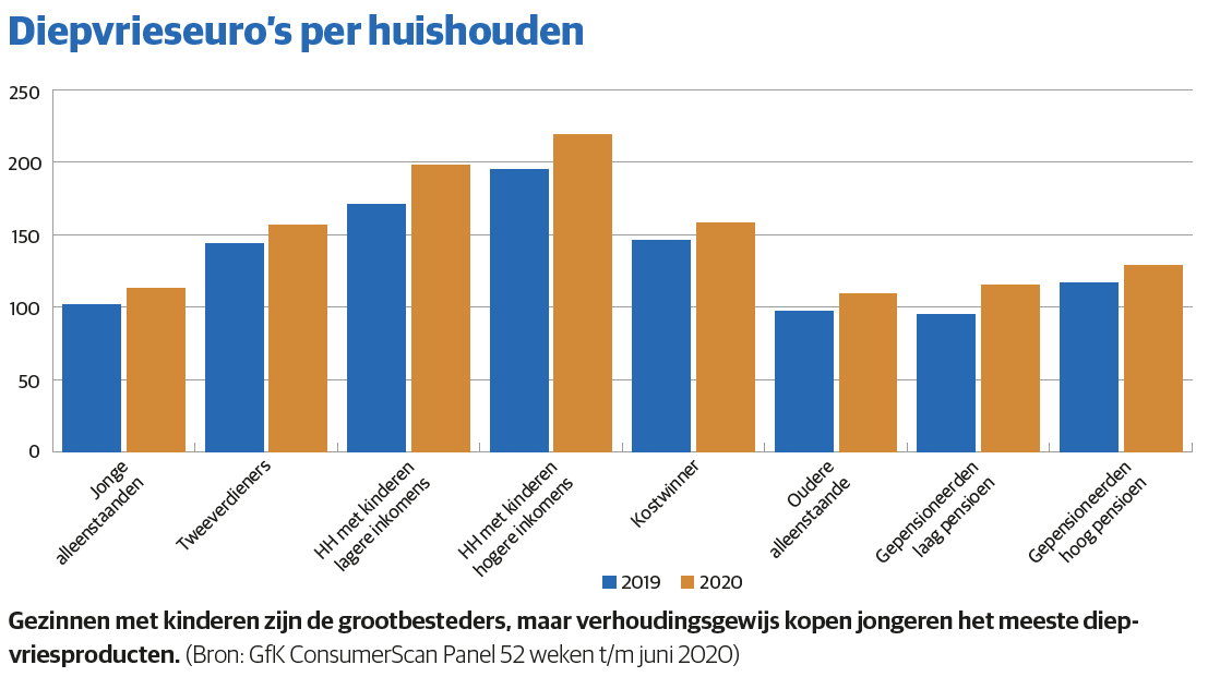 Na jaren van weinig ontwikkeling zit de diepvriesmarkt de laatste twee jaar in de lift, constateert Hendrik-Jan Schouten, key accountmanager bij GfK. Het gaat dus al langer de goede kant op. ‘In zijn totaliteit wordt er meer verkocht in diepvries. Dit geldt voor omzet en volume. De groei zit zo rond de 8 procent en houdt al langer aan.’ ‘Covid-19 heeft daar nog een schepje bovenop gedaan’, beaamt collega Marco van den Berk, eveneens key accountmanager.