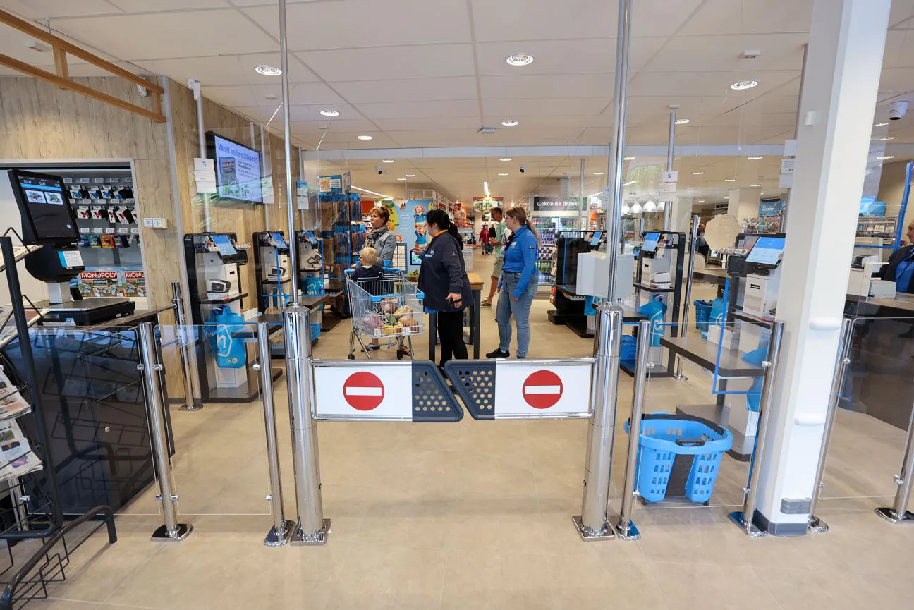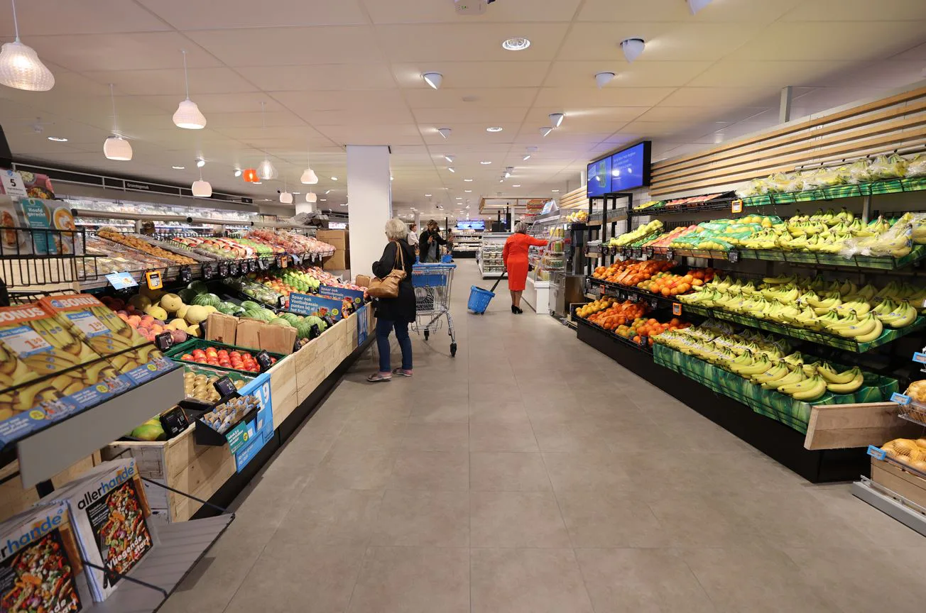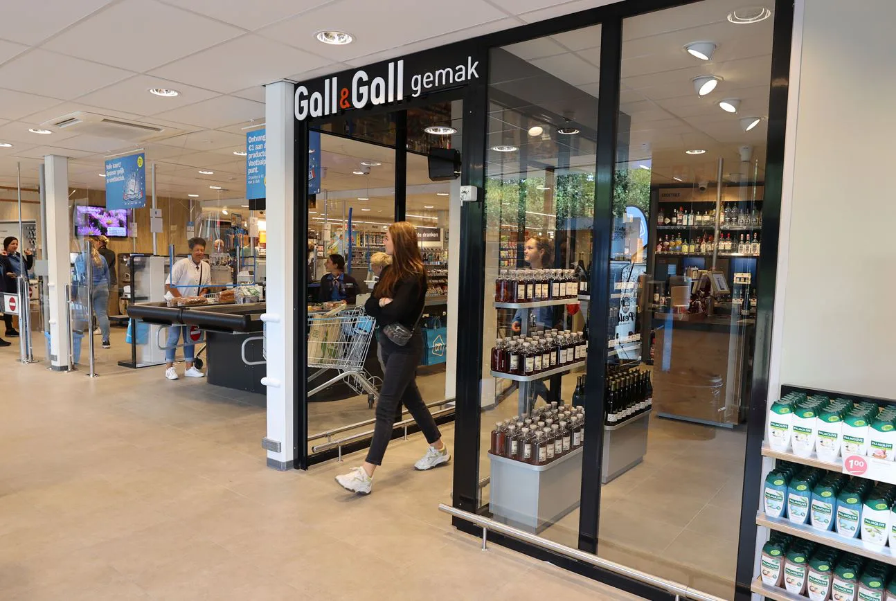 Dan maar naar het heden en de creativiteit van Van der Burgt. Te beginnen bij de ingang aan de rechterkant van de winkel. Daar staan nu een volledig vernieuwde inpandige Etos en Gall & Gall. Van der Burgt: ‘De oude Etos en Gall hebben we compleet leeg moeten halen, inclusief de muren. Die zijn nu wel brandwerend.’ Eenmaal buiten de Etos loopt de klant langs de kassa’s van de Albert Heijn. In Berghem is plaats gemaakt voor een paar reguliere kassa’s en zes zelfscankassa’s. Is dat niet wat te ambitieus voor een plaats als Berghem? ‘Je bent als ondernemer bezig met de toekomst en de groeiende rol van technologie in de winkel. We hebben weliswaar een schare, laat ik het traditionele, klanten noemen, maar die kennen zelfscan inmiddels ook al van omliggende winkels. Het is niet zo dat we hier hoeven te piloten’, zegt hij. ‘De toekomst zal leren of dit de goede verhouding qua kassa’s is. We hebben in ieder geval plaats om uit te breiden naar acht zelfscanpalen.’