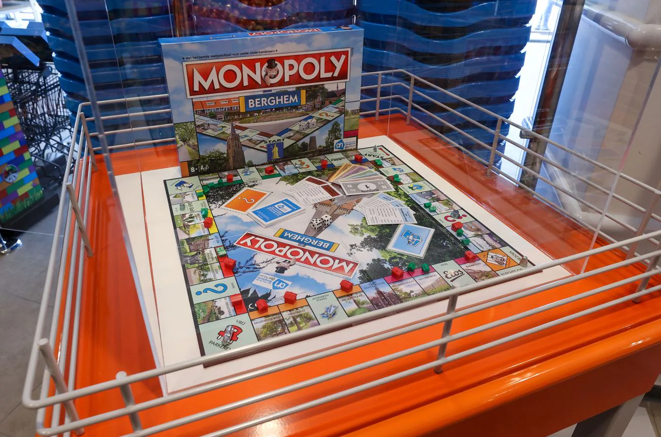 Wat vooral opvalt is de flinke keuze aan vers en lokaal. ‘Dat was mijn wens, het creëren van een ruim versplein. Ik heb het ingevuld vanuit de gedachte ‘van Berghem voor Berghem’. Een winkel met veel lokaal assortiment en lokale uitingen. Dat laatste zie je onder andere door een foto van de kerk aan de muur van de winkel en op de deuren van het magazijn komt nog een foto van Berghem van bovenaf, gemaakt door een drone. Daarnaast introduceer ik in het assortiment lokale helden, producten van acht, negen verschillende partijen uit de omgeving. Bijvoorbeeld salades van Looman en brood van bakkerij Lamers, beiden uit Oss.’ Ook in de communicatie zit een opvallend element. Zo heeft de winkel een actie met een Monopoly-spel dat is afgestemd op Berghem. ‘Het effect van een Monopoly-spel op klanten heb ik gezien bij andere AH-winkels.’ Om de actie onder de aandacht te brengen is er onder meer een teaser van de actie gelanceerd op Facebook en zijn er verschillende filmpjes gemaakt waarin Van der Burgt en zijn medewerkers het spel spelen.