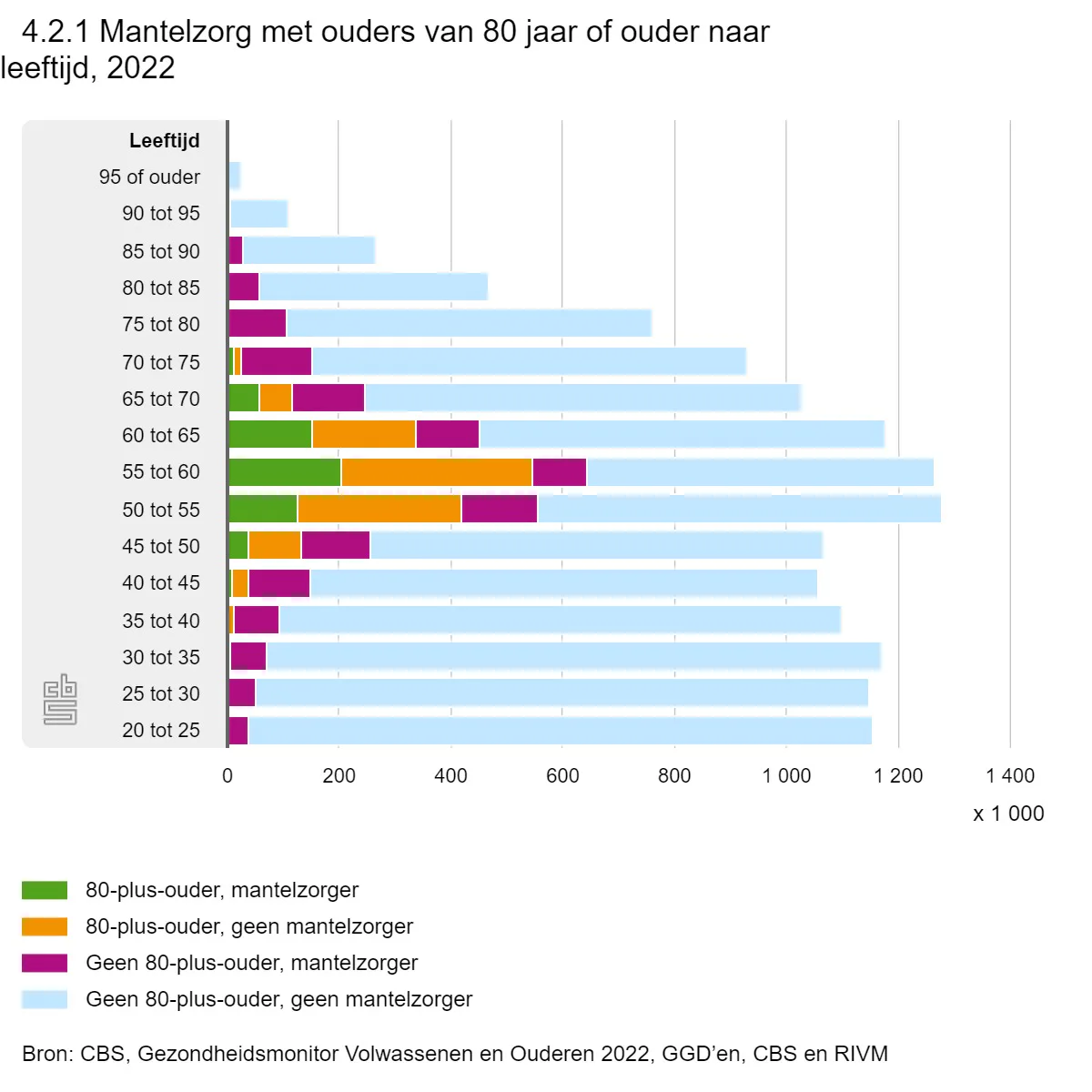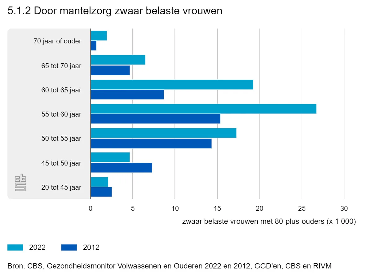 De nieuwste cijfers van het Centraal Bureau voor de Statistiek (CBS) liegen er niet om. Uit het onderzoek 'Mantelzorg door kinderen van 80-plussers' blijkt dat het aantal mantelzorgers (én hun ervaren belasting) in de afgelopen 10 jaar is toegenomen, zowel absoluut als relatief.