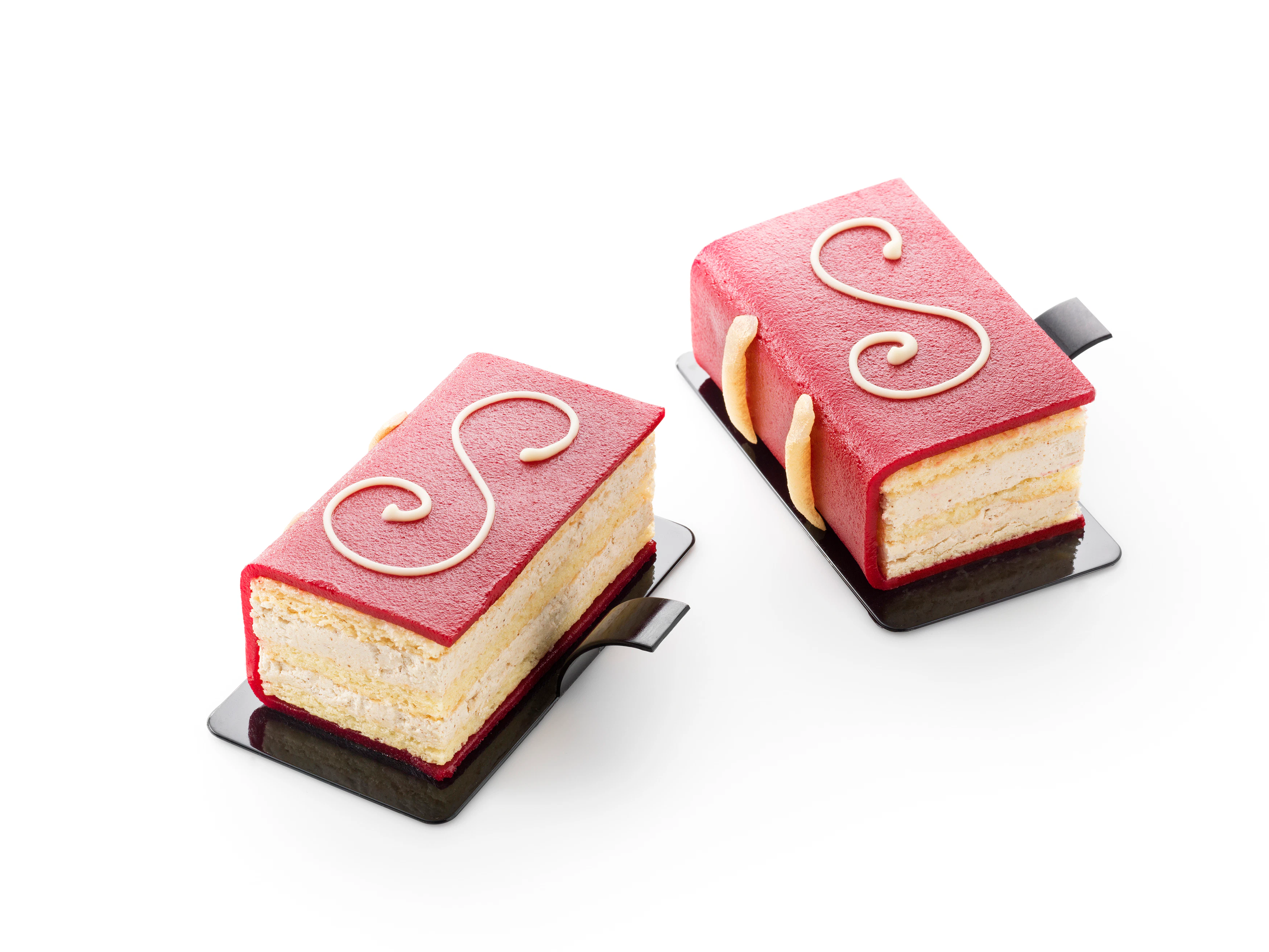 - Garneer een S op het gebakje met witte chocolade.